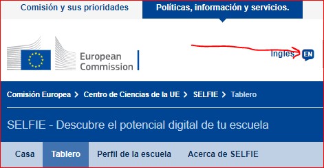 Por defecto, las páginas se nos ofrecerán en inglés. Podemos cambiar de idioma pulsando donde indica la flecha: