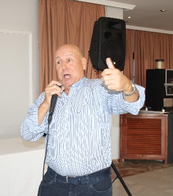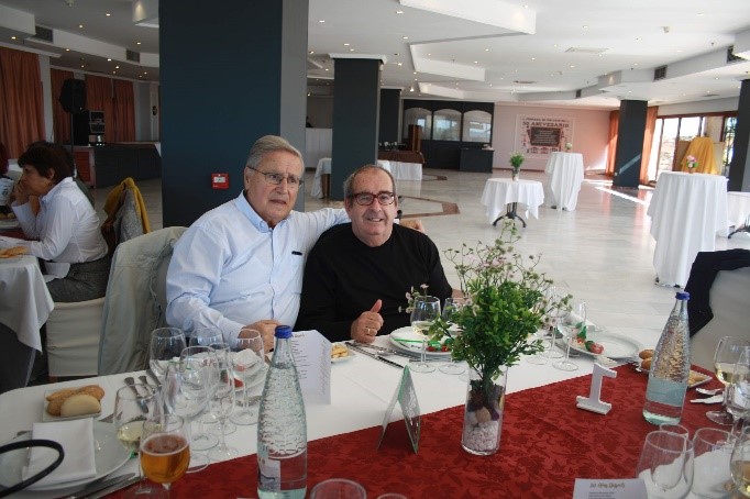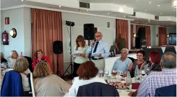 Finalizado el almuerzo, en un gran ambiente festivo los asistentes cantaron la canción del Maestro (https://youtu.be/6RSZ_al5H7w ) con música del pasodoble” Vaporcito del Puerto” y, a continuación, dos compañeros de Villamartín se arrancaron a cantar (Antonio Chacón) y a contar chistes (Pepe Pavón).