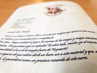 El cuadernillo está realizado en procesador de texto y con editor de fotografías, e incorpora el modelo oficial de carta de la escuela de magia de Harry Potter, pero con los datos personales modificados para personalizarlos de cara a nuestr@ alumn@ en cuestión.