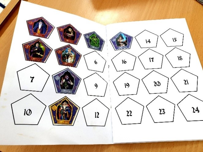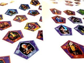 Está basado en la curiosa colección de cromos de grandes magos y magas de la Historia que aparecen como regalo en las ranas de chocolate que los alumnos y alumnas de Hogwarts (la escuela mágica) coleccionan e intercambian.