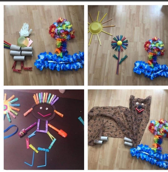 Sólo necesitamos recursos del día a día, recursos que están ahí y que nos permiten diseñar, dibujar desde la más absoluta libertad; recursos como: platos, telas, lápices, botones, pinzas, flores… así como un espacio amplio donde crear, proyectar y plasmar los talentos internos, sin olvidar el recurso más importante, LA FELICIDAD.