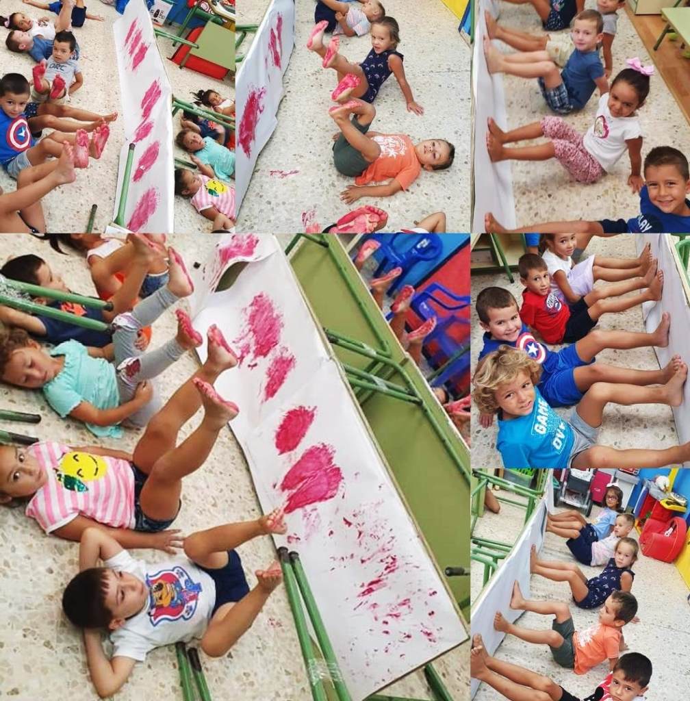 Recolocar las mesas, romper con la cotidianidad del espacio y mancharse. Mancharse, algo socialmente prohibido y que a los niños/as les encanta. Usar los pies y expresarse, moverse y reír; reír al son de las cosquillas, de las nuevas sensaciones y usar la carcajada como grito de libertad.