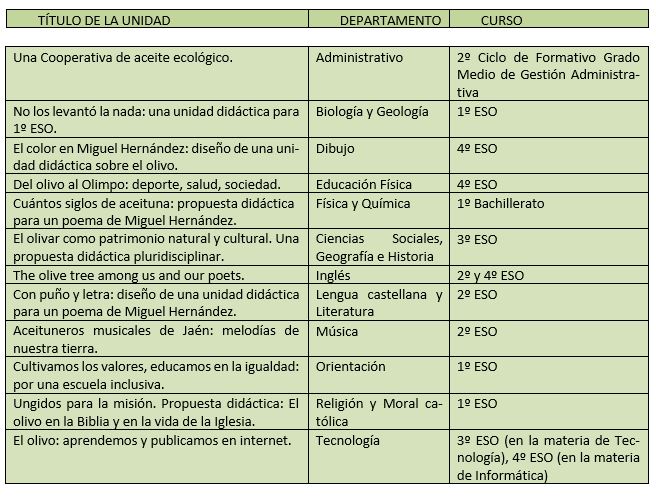 El Proyecto que llevamos a cabo en el año 2017 titulado El olivo en la poesía de Miguel Hernández: hacia una práctica educativa interdisciplinar surgió por iniciativa del Departamento de Lengua castellana y Literatura del IES “Diego de Siloé”, de Íllora.