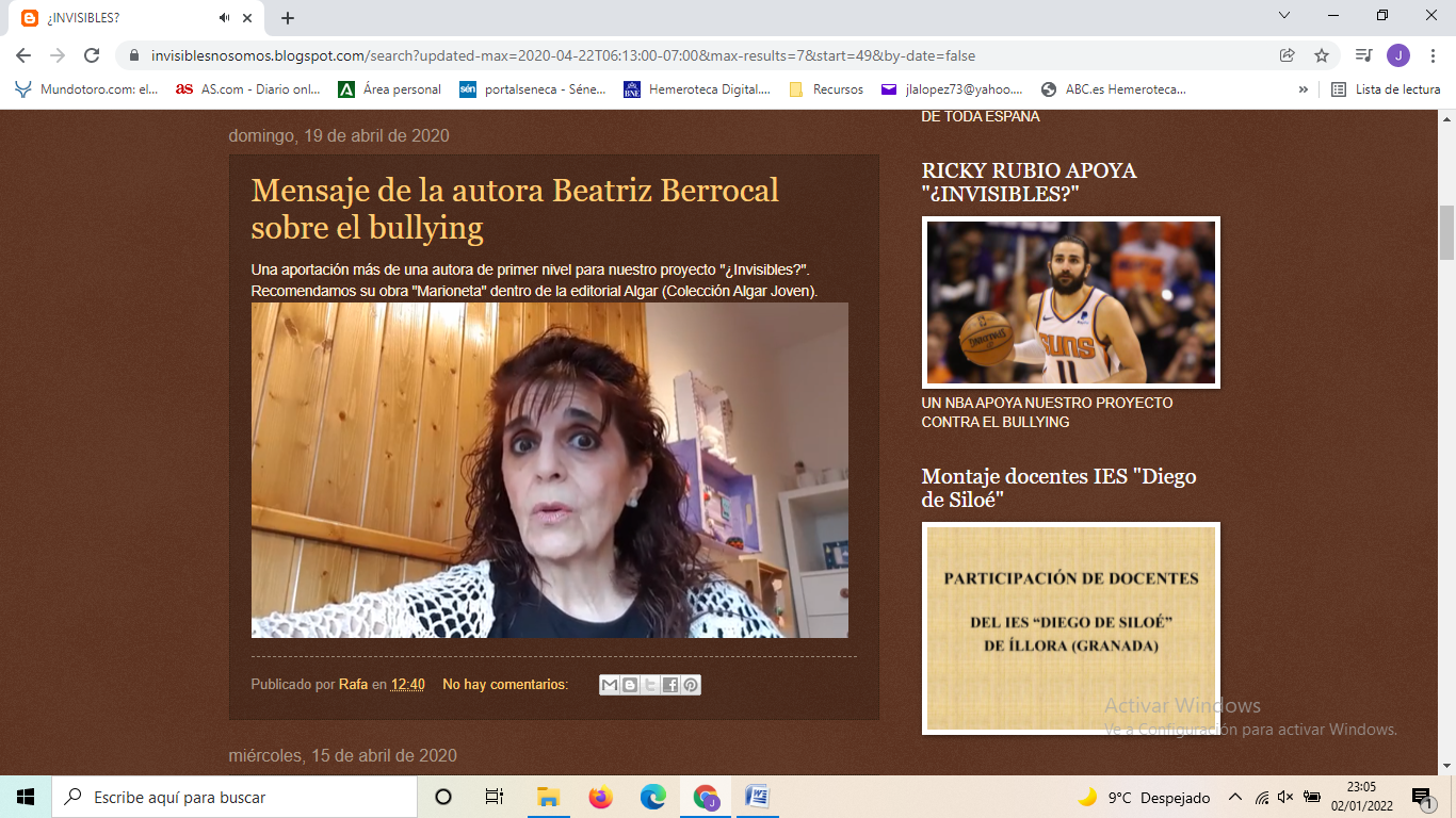 En el año 2019, un grupo de profesores del IES “Diego de Siloé” de Íllora (Granada), coordinados por José Luis Abraham López y Rafael Bailón Ruiz, pusimos en marcha un proyecto que bajo el título ¿Invisibles? intenta concienciar al alumnado sobre una lacra que, aunque a veces invisible, tiene una incidencia muy negativa en los adolescentes, como es el acoso escolar.