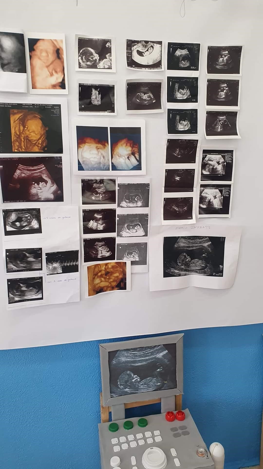 Con un ecógrafo hecho de cartón, la ambientación de un espacio de la clase y la puesta en escena, somos capaces de representar una situación cotidiana para cualquier embarazada.