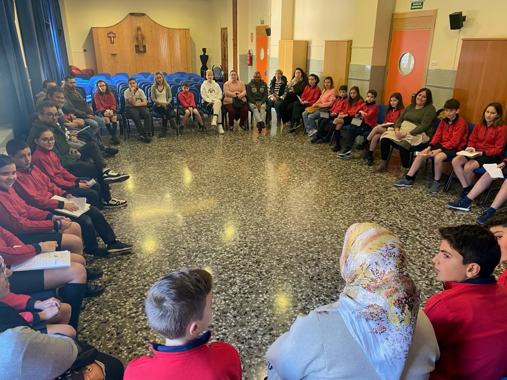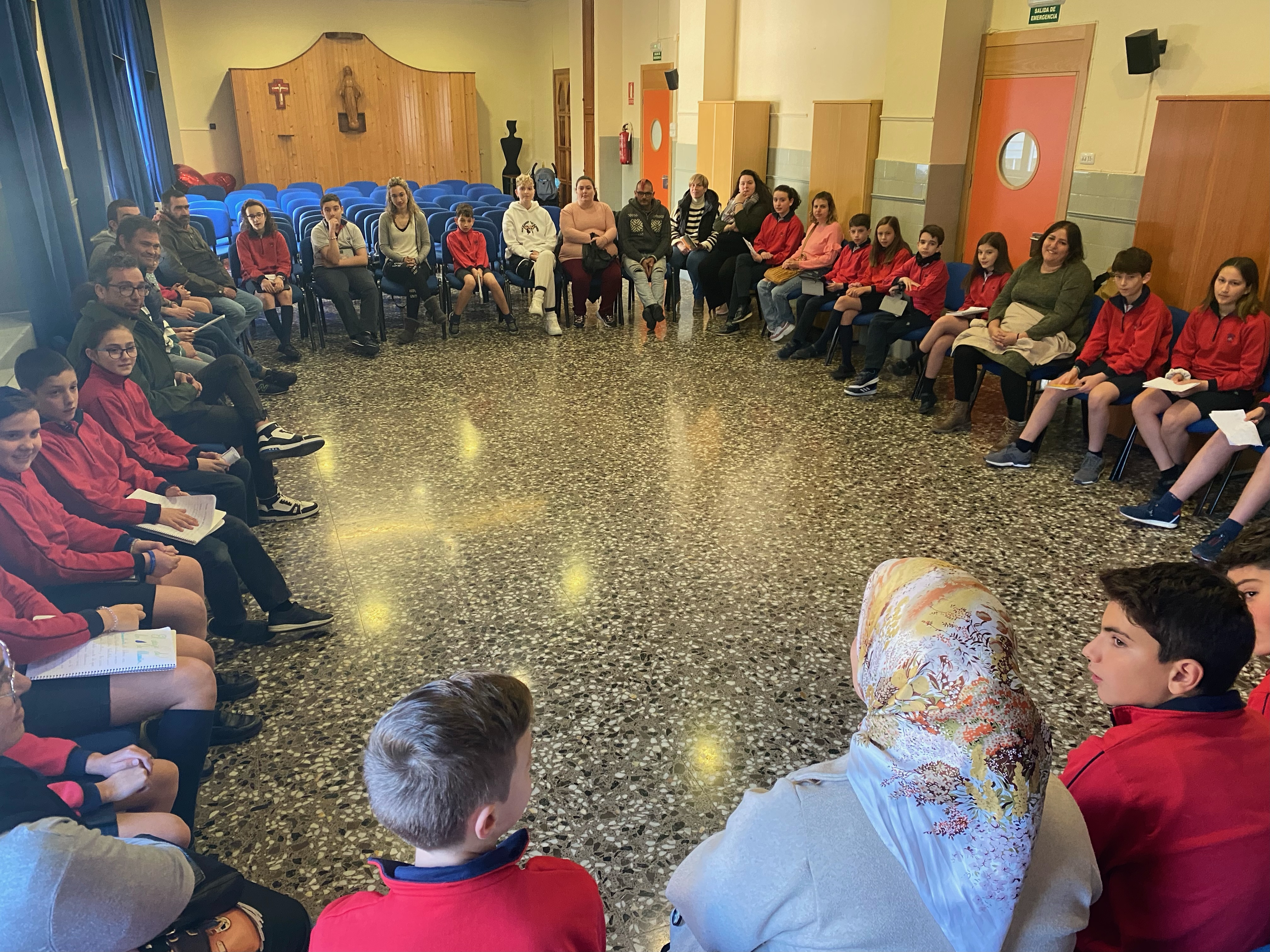 Después, como otra actividad complementaria fuera del horario escolar, desde el mes de enero hasta el momento y con una previsión de asistencia semanal hasta final de curso, el alumnado estuvo acudiendo todos los martes y miércoles de 17 a 19 horas al aula de Cáritas para prestar un servicio escolar a los hijos de las mujeres, con serios problemas escolares, sobre todo en la lengua valenciana. Resulta esperanzador ver como el alumnado dejaba de ir a las actividades extraescolares para ayudar de manera real a estas personas con tantas necesidades. También, con el objetivo de que las chicas conocieran mejor nuestra ciudad, organizamos una ruta por la ciudad para conocer cómo la Guerra Civil española afectó Alcoy, que estuvo bombardeado en siete ocasiones y el alumnado fue el guía de las amigas de “Mujer-Madre”.