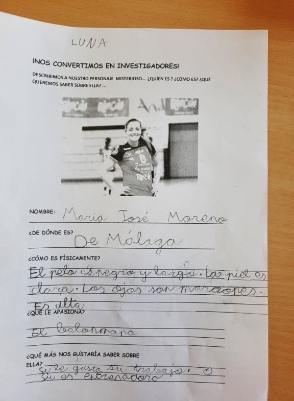 - Se les acercó a diferentes trabajos, ayudándoles a romper con estereotipos que tenían interiorizados, como por ejemplo con María José Moreno, presidenta de un club de balonmano femenino y que les llamó mucho la atención, sobre todo a los niños, de que una mujer dirigiese una entidad deportiva.