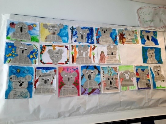 Pero no hubo un único producto final, y esto es lo que pasa con los proyectos; que van surgiendo cosas nuevas. También tuvimos que hacer exposiciones en los pasillos, tanto de todos los trabajos que nuestras niñas y niños iban trayendo de casa, ya que la respuesta por parte de las familias muy positiva, como de los trabajos artísticos que iban realizando en el aula. Y también fue una manera de que otros cursos pudiesen disfrutar de los trabajos realizados por nuestro alumnado, siendo muy significativo para ellos.