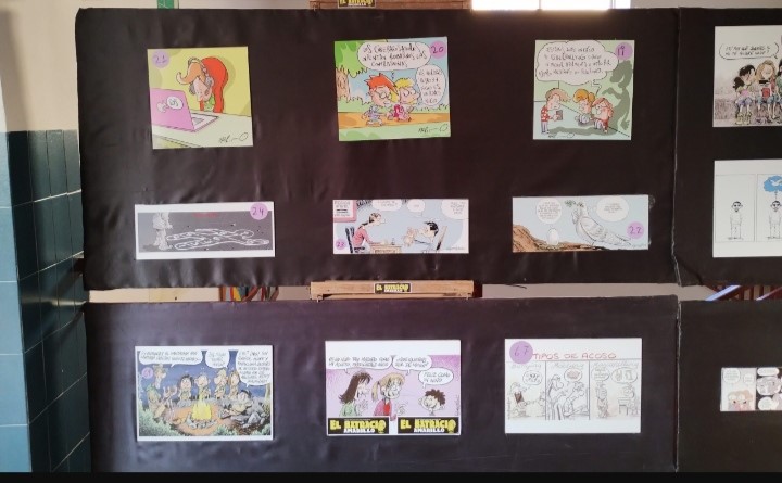 De la misma manera, a la exposición centrada en el acoso escolar que puede verse desde el pasado mes de octubre en el hall, se suma otra relacionada con la igualdad y la importancia de trabajar la coeducación dentro y fuera de las aulas (una y otra han sido desarrolladas por la revista de humor gráfico El batracio amarillo).