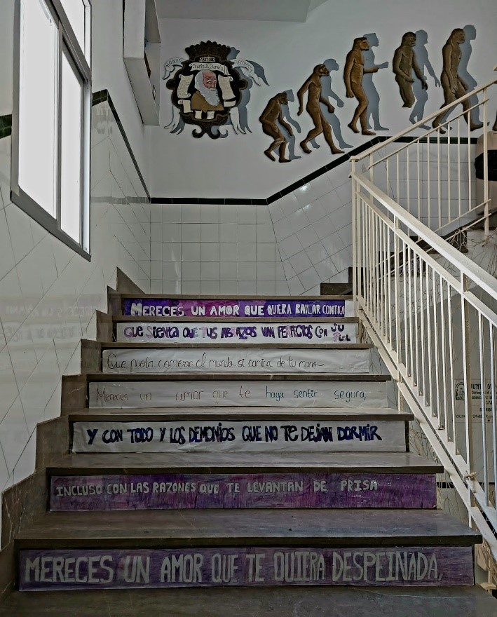 Resultado final de la iniciativa Decoración de escalera con poema.