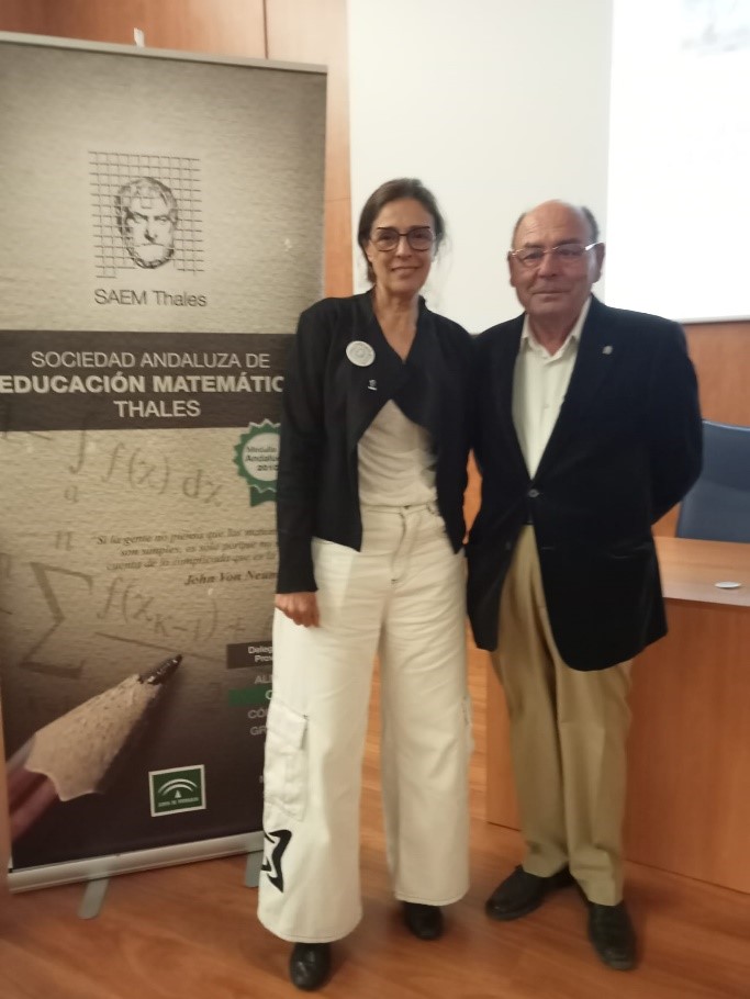 Ana Garcia López (THALES) y Manuel Morilla Jarén (TARTESSOS) durante el acto en la Universidad de Cádiz)