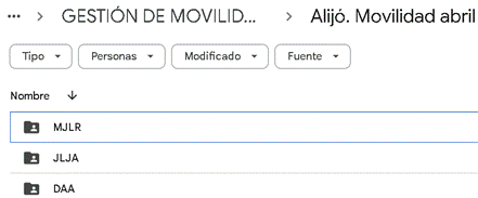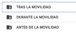 El sistema se estructura en una carpeta DRIVE principal de la movilidad a realizar, identificada con la localidad de destino, la cual contiene una carpeta compartida y personalizada para cada participante. Cada una de estas carpetas individualizadas se subdivide en tres subcarpetas clave: «Antes de la movilidad», «Durante la movilidad» y «Tras la movilidad». A continuación, se detalla el contenido de cada una:
